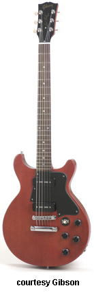 LES PAUL FADED DOUBLE CUTAWAY (LPFD) | - double cutaway body, features faded Satin Ebony, Worn Cherry, or Worn Yellow finish, gig bag included, mfg. 2003-08. |