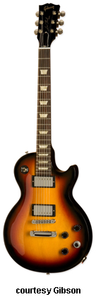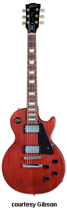 LES PAUL STUDIO (LPST) | - single sharp cutaway mahogany or swamp ash (2003-present) body, carved maple top, raised black pickguard, 22-fret rosewood fingerboard with pearl dot inlay, tune-o-matic bridge/stop tailpiece, three-per-side tuners, chrome hardware, two covered humbucker pickups, four knobs (two v, two tone), three-way pickup switch, available in Alpine White, Blue Teal Flip-Flop (disc. 2005), Classic White (disc. 2008), Ebony, Fireburst, Platinum (2003-05), Pewter (2002 only), White (disc. 1994), or Wine Red finish, mfg. 1984-1998, reintroduced 2001-present. |