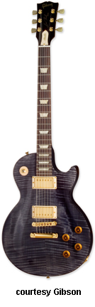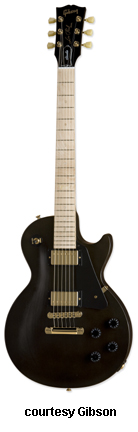 Les Paul Studio Gothic | - similar to the Les Paul Studio, except has Gibson's Gothic appointments which include a Satin Black finish, black chrome hardware, a black pickguard, truss-rod cover, and jack input plate, and no fingerboard inlays except a 12th fret moon and star design, mfg. 1998-2001. |