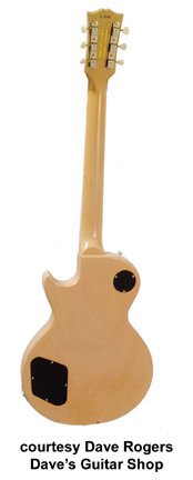 LES PAUL SPECIAL (MFG. 1955-1960) | - single cutaway mahogany body, 13 in. wide, 17.25 in. long, and 1.875 in. deep, 24.75 in. scale, multi-layer black pickguard, mahogany neck, 16/22-fret bound rosewood fingerboard with dot inlay, wrapover stop tailpiece, 3-per-side tuners with plastic buttons, nickel hardware, 2 single coil pickups, 2 volume/2 tone controls, 3-position switch, available in TV (Limed Mahogany, introduced 1955), Cherry, and Cherry Red finish, approx. 7,330 mfg. 1955-1960. |