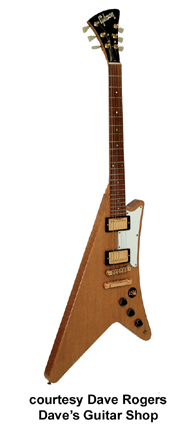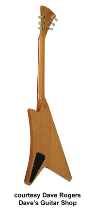 GIBSON | ELECTRIC: MODERNE SERIES | | MODERNE | - originally designed as one of three Gibson modernistic concept guitars (with the Explorer and Flying V), this instrument was blue-printed in 1958. A debate still rages over whether or not they were actually built, as a 1958 Moderne has not yet been seen. There is some vague mention on a shipping list (that could also apply to the Explorer model). Tom Wheeler, in his book American Guitars, suggests that some were built - and when the music retailers responded in a negative way, Gibson sold some at a cut rate price to employees and destroyed others. Ted McCarty, who was president of Gibson at the time (and part designer of the three models), has guessed that a handful were built as prototypes. |