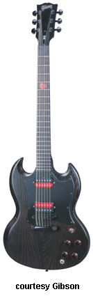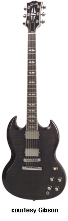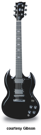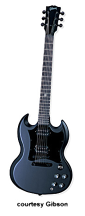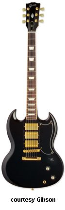 SG TONY IOMMI SIGNATURE | - features two Tony Iommi humbuckers and silver crosses for fret inlays, signature decal on truss rod cover, chrome hardware, available in Ebony finish, mfg. 2001-2003. |