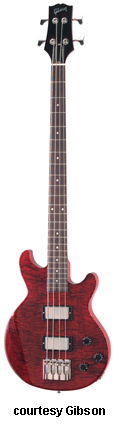LES PAUL MONEY BASS/DOUBLE CUTAWAY BASS (BLD4) | - asymetrical double cutaway Les Paul body style, 22-fret fingerboard with dot inlay, two bass humbucker pickups, three knobs, chrome or gold hardware, available in Black Cherry or Root Beer finish, mfg. 2005-07. |