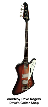 THUNDERBIRD II | - asymmetrical hourglass style mahogany body, layered white pickguard with engraved Thunderbird logo, thumb rest, through-body mahogany neck, 20-fret rosewood fingerboard with pearl dot inlay, tune-o-matic bridge/stop tailpiece, 6-on-a-side tuners, chrome hardware, single coil pickups with cover, volume/tone controls, available in Custom Color and Sunburst finishes, approx. 1,150 mfg. 1963-69. |