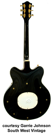 CHET ATKINS JUNIOR | - single cutaway hollow body, double-bound top and back, two unbound f-holes, single-bound zero-fret rosewood fingerboard with offset dot inlays (bass side below 12th fret, treble side above 12th fret) and a block inlay at the 12th fret, unbound headstock with model nameplate and three-per-side tuners, bar bridge, Burns vibrato tailpiece, gray pickguard, single SuperTron pickup, two knobs, one switch, available in Orange Stain finish, 12.75 in. body width, 23.25 in. scale, mfg. 1970 only. |