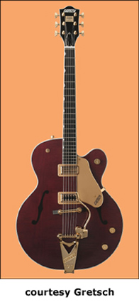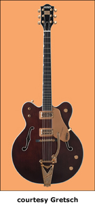 Nashville/Chet Atkins Hollow Body Model Dynasonic Model G6120DS/DSV (No. 240-1210/1213/1256) | - similar to the Nashville/Chet Atkins Hollow Body Model G6120, except has Dynasonic pickups, available in Western Maple Stain finish, mfg. 2003-present. |