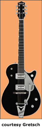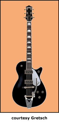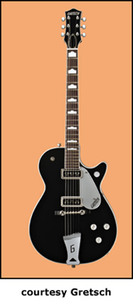 Duo Jet Reissue Bigsby Model G6128T (No. 241-0400) | - similar to the Duo Jet Reissue Model G6128, except has a chrome Gretsch Bigsby vibrato tailpiece, current mfg. |