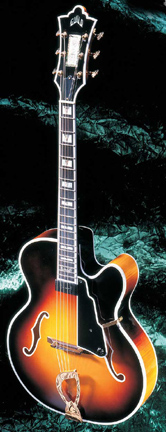 Guild Benedetto Johnny Smith Award (No. 360-9800) | - similar to the Johnny Smith Award/Artist Award, except was redesigned with new features including a recarved top and back, refined f-hole and pickguard design, changed bracing, and mother-of-pearl "Benedetto" logo inlay on the 19th fret, available in Antique Burst, Honey Blonde, or Opulent Brown finish, mfg. 1999-2006. |