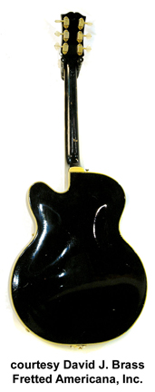 JOHNNY SMITH AWARD/ARTIST AWARD (NO. 350-8300) | - single rounded cutaway hollow body, bound hand-carved solid spruce top, two bound f-holes, solid highly figured maple back and sides, five-piece maple neck, 20-fret bound ebony fingerboard with pearl block inlyas with abalone V wedges, multi-ply bound headstock with pearl/abalone inscribed block logo/inlay, three-per-side Imperial tuners, adj. ebony bridge, stylized trapeze tailpiece, bound tortoiseshell pickguard, floating DeArmond single coil pickup, single volume knob and jack mounted on pickguard, gold-plated hardware, available in Blonde or Sunburst finish, 17 in. body width, 24.75 in. scale, mfg. 1956-1999. |