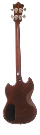 JS BASS I | - offset double cutaway mahogany body/neck, 21-fret rosewood fingerboard with pearl dot inlay, fixed bridge, blackface peghead with pearl Chesterfield/logo inlay, 2-per-side tuners, chrome hardware, humbucker pickup, volume/tone controls, available in Black, Natural and Sunburst finishes, mfg. 1970-78. |