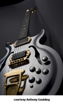 GOULDING GUITARS | Instruments currently produced in the United Kingdom since the late 1980s. | Luthier Anthony Goulding has been building guitars since the late 1980s. Since the mid-1990s, he has been building all-aluminum guitars. Goulding worked as a precision engineer for most of his life, which has lead to the development of the aluminum guitar. Aluminum makes the guitar extremely stable as well as creating great tonal and sustain qualities. Each guitar is custom built and every part on the guitar can be built out of aluminum, brass, gold-plated brass, or stainless steel. Prices begin at £2,900. For more information, visit Goulding's website or contact him directly (see Trademark Index). | |