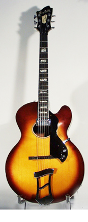 VIKING I N (HG 802) | - 2 humbucker pickups, 2 volume/2 tone controls, 3-position tone/3-position pickup switch, 3 on a side D'Aquisto designed Van Ghent tuners, plain badge on headstock, rosewood bridge base. |