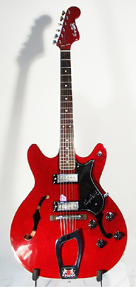 H II N (HG 801) | - birch body and neck, 2 humbuckers, 3-way pickups switch, 2 volume/2 tone control, adjustable bridge, Hagstrom "tremar" tremelo. |