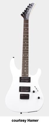 CALIFORNIAN (MODEL CX2/CX2R) | - double offset cutaway basswood body, maple neck, 24-fret maple fingerboard with black dot inlays (2003-06) or rosewood fingerboard with white dot inlays (new 2007), six-on-one-side tuners, two black humbucker pickups, two knobs (v, tone), three-way switch, tune-o-matic bridge, STB, black hardware, available in Black, White, or Red finish, mfg. 2003-present. |