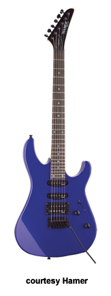 CALIFORNIAN HSH (MODEL CX3) | - similar to the CX2 Californian, except has a rosewood fingerboard, two humbuckers and one single coil pickups HSH, and a five-way switch, available in Black or Gun Metal Blue finish, mfg. 2003-06. |