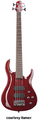 Velocity 5 Ash Five-String (Model VEL2A5, XT Series) | - similar to the Veolcity 2 Ash, except in five-string configuration with 2/3-per-side tuners and two soap bar pickups, available in Trans. Red finish, mfg. 2007-present. |