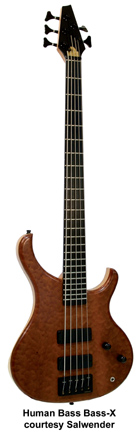 HUMAN BASE | Instruments currently built in Waldems, Germany. Distributed in the U.S. by Salwender International of Orange, CA. | Human Base produces four models of high quality bolt neck and neck-through bass guitars. Currently, Salwender International is distributing the Base X bolt-on neck model in the U.S. market. Additional specifications and information are available through either Human Base or Salwender International directly (see Trademark Index).