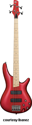 SR390 | - offset double cutaway ash body, bolt-on three-piece maple neck, 24-fret rosewood fingerboard with pearl dot inlay, two-per-side tuners, standard fixed bridge, two IBZ DX soapbar pickups, three knobs, Phat bass boost circuitry, black hardware, available in Butterscotch or Trans. Red finish, mfg. 1999 only. |