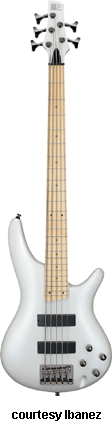 SR305M Second Version Five-String Maple Fingerboard | - similar to the SR305 Second Version Five-String, except has a maple fingerboard with black dot inlays, available in Pearl White finish, new 2009. |