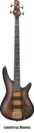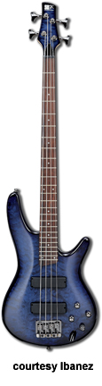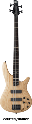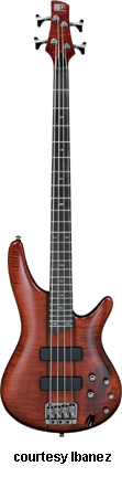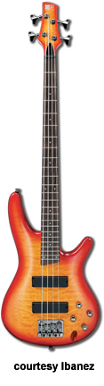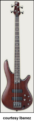 SR480 | - offset double cutaway mahogany body, five-piece maple/Wenga neck, 24 medium fret rosewood fingerboard with pearl dot position markers, Die Cast 4-String bridge, one IBZ J-style and one IBZ P-style pickup, EQBIII 3-band active EQ, black hardware, available in Brown Mahogany or Stained Oil finish, mfg. 1999-2002. |