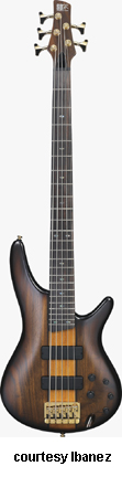 SR2005 FIVE-STRING | - similar to SR2000, except in five-string configuration, 3/2-per-side tuners, and two J-style Ibanez pickups, mfg. 1992-93. |