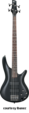 SR3000/SR3000E | - offset double cutaway mahogany body, five-piece wenge/bubinga neck, 24-fret wenge fingerboard with abalone oval inlay, 2 IBZ SFR or Batolini pickups, Mono-Rail II bridge with D-tuner, active EQ, black hardware, available in Stained Oil finish, mfg. 1999-2004. |