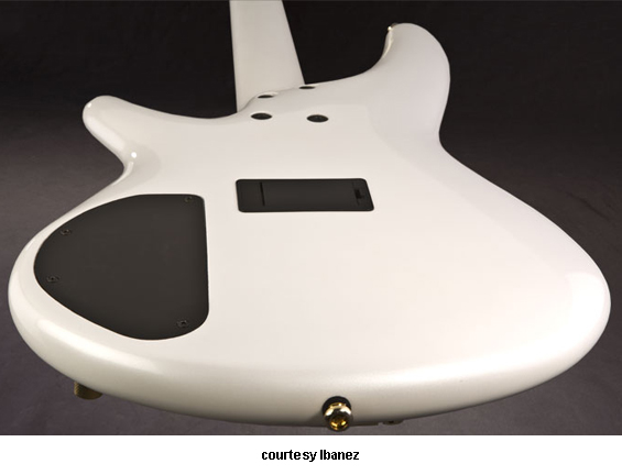 SR530 | - offset double cutaway mahogany body, bolt-on five-piece maple/rosewood neck, 24-fret rosewood fingerboard with abalone pearl oval inlays, matching finish headstock overlay, two-per-side tuners, Accu-Cast B20 bridge, two Bartolini MK1 pickups, Bartolini MK1 3-band active electronics, five knobs, gold hardware, available in Iron Pewter or Pearl White finish, mfg. 2008-present. |