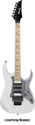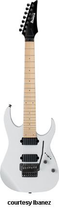 RG1527M Seven-String Maple Fingerboard | - similar to the RG1527, except has a maple fingerboard with small black dot inlays, available in Galaxy White finish, new 2009. |