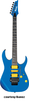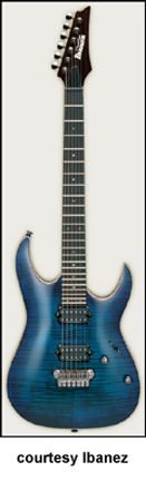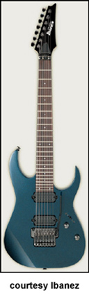 RG1527 SEVEN-STRING | - similar to the RG1570, except in seven-string configuration, seven-on-one-side tuners, and has two humbucker pickups, available in Cosmic Blue (2003-04) or Royal Blue (2005-present) finish, hardshell case included, mfg. 2003-present. |
