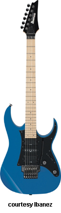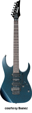 RG1570 | - offset double cutaway basswood body, five-piece Wizard Prestige maple/walnut neck, 24-fret rosewood fingerboard with dot inlay, black headstock with six-on-one-side tuners, Edge Pro bridge, two humbucker and one single coil pickups in H/S/H configuration, two knobs, five-way switch, available in Black (new 2008), Candy Apple (new 2008), Gray Nickel (2003-04), Mirage Blue (2005-present), Mirage Red (2005-07), or Royal Blue (2003-04) finish, mfg. 2003-present. |