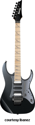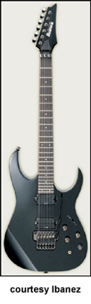 RG1520G | - offset double cutaway basswood body, five-piece Wizard Prestige maple/walnut neck, 24-fret rosewood fingerboard with dot inlay, black headstock withsix-on-one-side tuners, Edge Pro bridge with piezo for Roland GK output, two humbucker pickups, three knobs, five-way switch, two mini switches, available in Black (2004) or Black Pearl (2005-06) finish, mfg. 2004-06. |