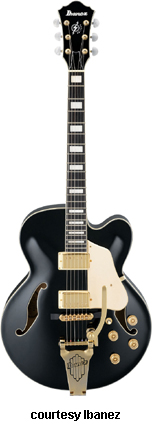 AF75TDG | - similar to the AF75, except has a Vintage Vibrato tailpiece, cream pickguard, gold colored knobs, and gold hardware, available in Black (new 2009) or Ivory finish, mfg. 2008-present. |