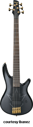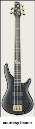 PIB1 PETER IWERS SIGNATURE | - five-string configuration, offset double cutaway SR-style soft maple body, five-piece maple/bubinga NTB, 24-fret rosewood fingerboard with offset special PIB dot inlays, black heastock overlay with logo, 2/3-per-side tuners, Mono-Rail V bridge, two Bartolini Custom pickups, EQB low-impedance circuit, single knob, gold hardware, available in Black finish with a custom flame graphic, 34 in. scale, new 2009. |