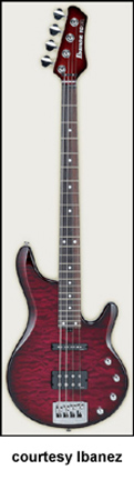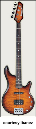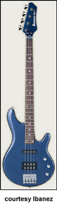 IBANEZ | ELECTRIC BASS: ROADGEAR (RD) SERIES | | RD300 | - offset double cutaway with extended bass horn, agathis body, maple neck, 24-fret rosewood fingerboard with dot inlay, four-on-one-side tuners, B-100 bridge, two pickups, three knobs, chrome hardware, available in Black or Navy Metallic (2005-07) finish, mfg. 2004-07. |
