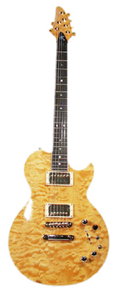 i81 | - double sharp cutaway, contoured mahogany body, mahognay bolt-on neck, figured and bookmatched maple top, 22-fret rosewood fingerboard with pearl dot inlays, unique sculpted headstock with 2/4-per-side tuners, Ivoroid binding, two Classic "iM" Alnico humbucking pickups, volume and tone knobs, pickup switch, fixed bridge, chrome hardware, available in Charcoal Gray, Cinnamon, Emerald Green, Natural, Purple, or Turquoise finish, 25.5 in. scale, current mfg. |