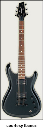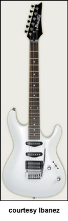 IBANEZ | ELECTRIC: GSA/GSZ SERIES | | GSA20 | - double offset cutaway agathis body, GSA maple neck, 22-fret rosewood fingerboard with dot inlay, standard tremolo, six-on-one-side tuners, two humbucker pickups (PSND1 & PSND2), available in Black finish, mfg. 2000-04. |