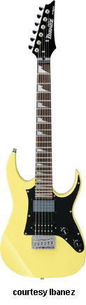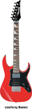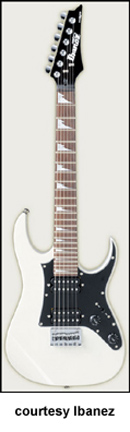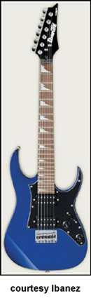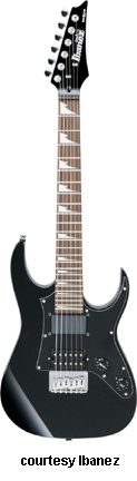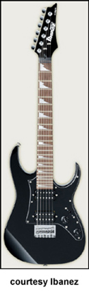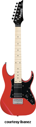 GRGM21 MIKRO | - similar to the GRG170DX except in a smaller version, poplar (2006-07), mahogany (2008), or basswood (new 2009) body, fixed bridge, and pickguard like the GRX20, 22.2 in. scale, available in Black Night, Candy Apple (2007-08), Jewel Blue (2006-08), or White finish, mfg. 2006-present. |