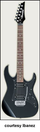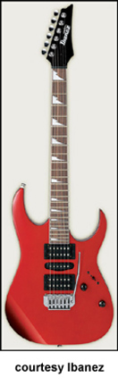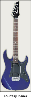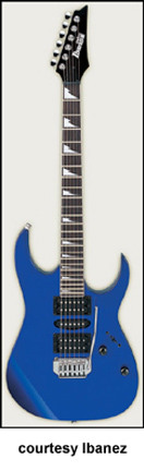 IBANEZ | ELECTRIC: GX/GRG/GRX SERIES | Models RX20, RX20 L, and RX40 were part of the RX Series from 1994 until 1997. In 1998, these models were redesignated with a 'G' prefix and added to the GRX Series. | GRG170 DX | - offset double cutaway basswood body, maple neck, 24-fret rosewood fingerboard with sharktooth inlays, black headstock with six-per-side tuners, FAT 10 tremolo bridge, two humbucker and one single coil pickups, two knobs, five-way switch, chrome hardware, Black Night, Candy Apple, or Jewel Blue finish, mfg. 2005-present. |
