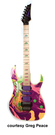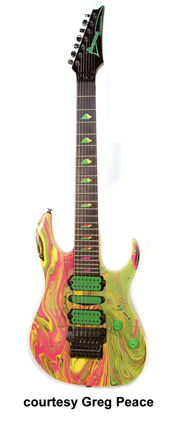 JEM77 FP (Floral Pattern) | - similar to JEM77 GMC, except has green/red vine fingerboard inlay, body matching peghead, available in Floral Pattern finish, mfg. 1988-1998. |
