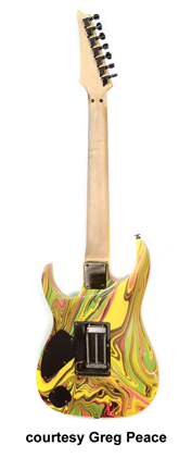 JEM777 V | - similar to JEM777, except has a vine pattern instead of pyramids, available in Black, Desert Sun Yellow, or Shocking Pink finish, mfg. 1989-1993. |