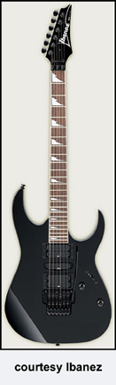RG420 | - similar to the RG320, except features Lo TRS tremolo, two humbucker (V7/V8) IBZ pickups, and black hardware, available in Black or Royal Blue finish, mfg. 1998 only. |