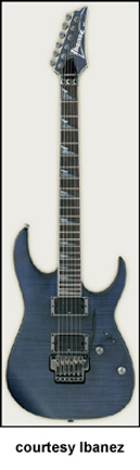 RG570CT | - similar to the RG570 except has an alder body with a maple top, Ibanez pickups, a Lo-Pro Edge vibrato bridge, and gold hardware, available in Amber or Trans. Blue finish, mfg. 1995 only. |