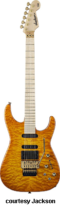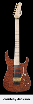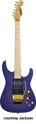 JACKSON | ELECTRIC: PHIL COLLEN SERIES | | PHIL COLLEN MODEL | - unbalanced double cutaway poplar body, through-body maple neck, 24-fret bound ebony fingerboard with pearl sharkfin inlay, double locking vibrato, bound peghead with pearl Jackson logo inlay, 6-on-a-side Gotoh tuners, black hardware, single coil/humbucker Jackson pickups, volume control, 3-position switch, available in Metallic Black, Pearl White, or Radiant Red Pearl finishes, mfg. 1991 only. |