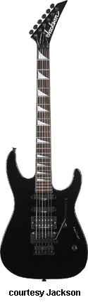 SOLOIST STANDARD | - offset double cutaway poplar body, bolt-on maple neck, 24-fret rosewood fingerboard with dot inlay, double locking vibrato, 6-on-a-side tuners, black hardware, 2 stacked coil/humbucker Jackson pickups, 1 volume/1 tone control, 5-position switch, available in Bright Red, Deep Metallic Blue, Metallic Blue, or Pearl White finishes, mfg. 1991-95. |