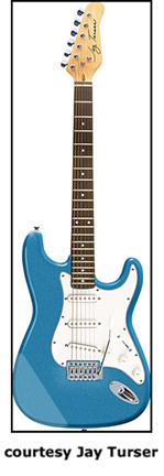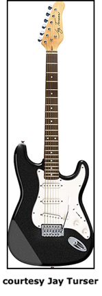 JT-30 | - 3/4-size Strat-style solid body, maple neck, rosewood fingerboard, six-on-one-side tuners, three single coil pickups, volume/tone controls, five-way switch, available in Deep Purple, Metallic Black, Metallic Blue, Metallic Red, Natural Honey, Trans. Black, Trans. Blue, Trans. Moss Green, or Trans. Red finishes, current mfg. |