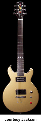 JACKSON | ELECTRIC: JJ SERIES (SCOTT IAN) | | JJ1 | - offset dual cutaway poplar or korina body (bass horn slightly extended), bolt-on maple neck, 25.5 in. scale, 22-fret rosewood fingerboard with dice inlay 12th fret markers, 3-per-side headstock, chrome hardware, Wilkinson GTB 100 stop tailpiece, 2 exposed humbuckers, volume/tone control, 3 way selector, available in Black, Silver Sparkle, or Natural finishes, mfg. 1996-2001. |