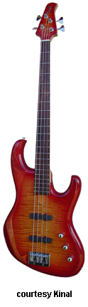 MK 4-B | - offset double cutaway alder, ash, korina or maple body, bolt-on graphite-reinforced hard maple neck, 24-fret ebony fingerboard, fixed bridge (front or rear loading of strings), two single coil Bartolini (or Fralin or Lane Poor) pickups, volume/blend/tone controls, available in Natural, Sunburst, Trans. Black, Trans. Blue, or Trans. Red finish, 34 in.or 35 in.scale, current mfg. |