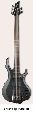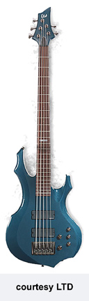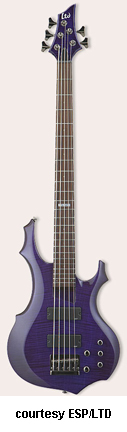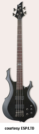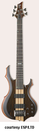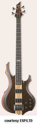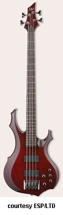 LTD | ELECTRIC BASS: F SERIES | In 2003 the B-200 Series recieved flamed maple tops, and See-Thru Black Cherry and See-Thru Black finishes were introduced. | F-4E | - offset double cutaway sculpted mahogany body with an ebony top, five-piece maple/mahogany NTB, 24-fret ebony fingerboard with offset pearl dots and 12th fret F-4 logo inlays, matching finish headstock, two-per-side tuners, BB-604 bridge, STB, two SB-4 pickups, ABQ-3 active electronics, five knobs (MV, balance, b, m, t), black nickel hardware, available in Natural Gloss finish, 34 in. scale, new 2008. |