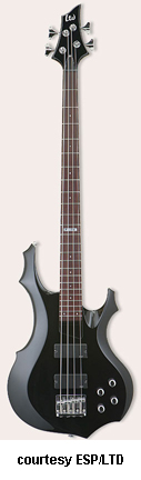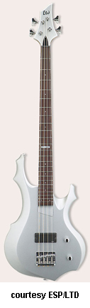F-204 | - offset double cutaway sculpted mahogany body, bolt-on maple neck with rosewood fingerboard, white dot inlays, 24 XJ frets, 4 String Deluxe Bass bridge, two EMG-HZ pickups with 3-band active EQ, black hardware, available in Black, Titanium, Grey Satin, Midnight Purple, or Gun metal Blue finishes, mfg. 1999-2003. |