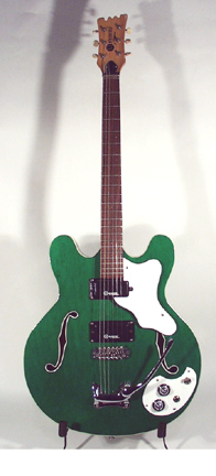 CELEBRITY (MARK I, CE II, # 211) | - bound arched top, 1 13/16" body width, semi-hollow body, spruce top, maple back/sides, maple neck, 2 bound f-holes, 24.5 in. scale, 22-fret bound rosewood fingerboard, roller bridge, vibrato tailpiece, 3-per-side deluxe chrome tuners, raised white pickguard, chrome hardware, 2 adjustable pickups, volume/tone controls, 3-way selector switch, white "apostrophe" plastic controls plate on lower bout, available in Trans. Cherry Red or Trans. Sunburst finishes, mfg. 1965-69. |